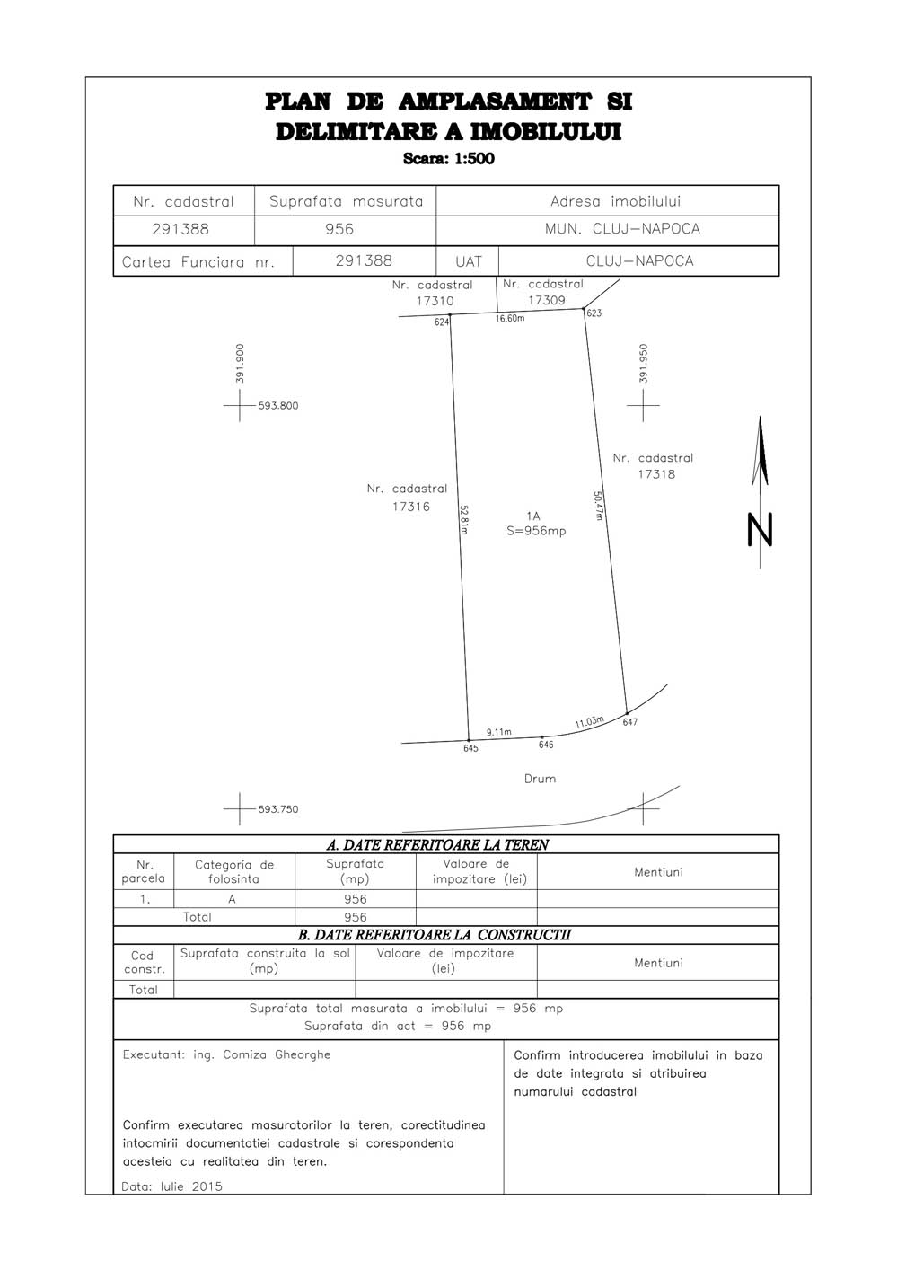 LOT 103 Caracteristici tehnice Regim construcţie: Single or Duplex Suprafaţă: 956m2 Utilităţi: apă, canalizare, gaz, energie electrică şi fibră optică pentru telefonie, televiziune şi internet VANDUT