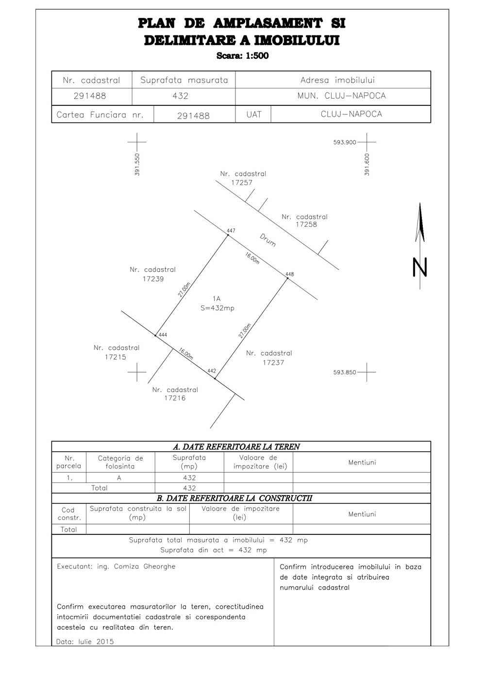 LOT 23 Caracteristici tehnice Regim construcţie: Single Family Suprafaţă: 432m2 Utilităţi: apă, canalizare, gaz, energie electrică şi fibră optică pentru telefonie, televiziune şi internet VANDUT
